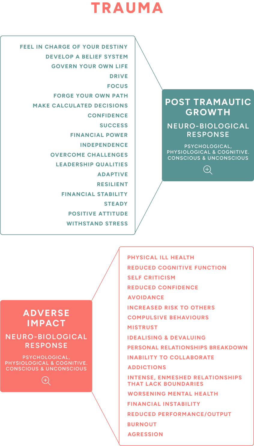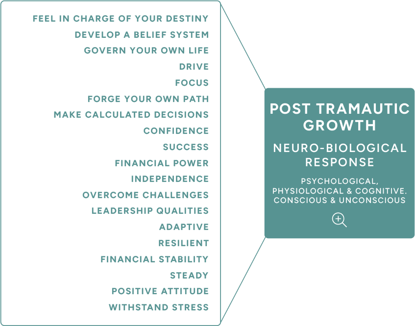 Post-traumatic growth is not simply a psychological construct, it has measurable neurobiological correlates. The “positive neurobiological response” refers to adaptive changes in the brain and body that can emerge after early childhood adverse experiences, allowing us to experience growth rather than being locked in post-traumatic stress.