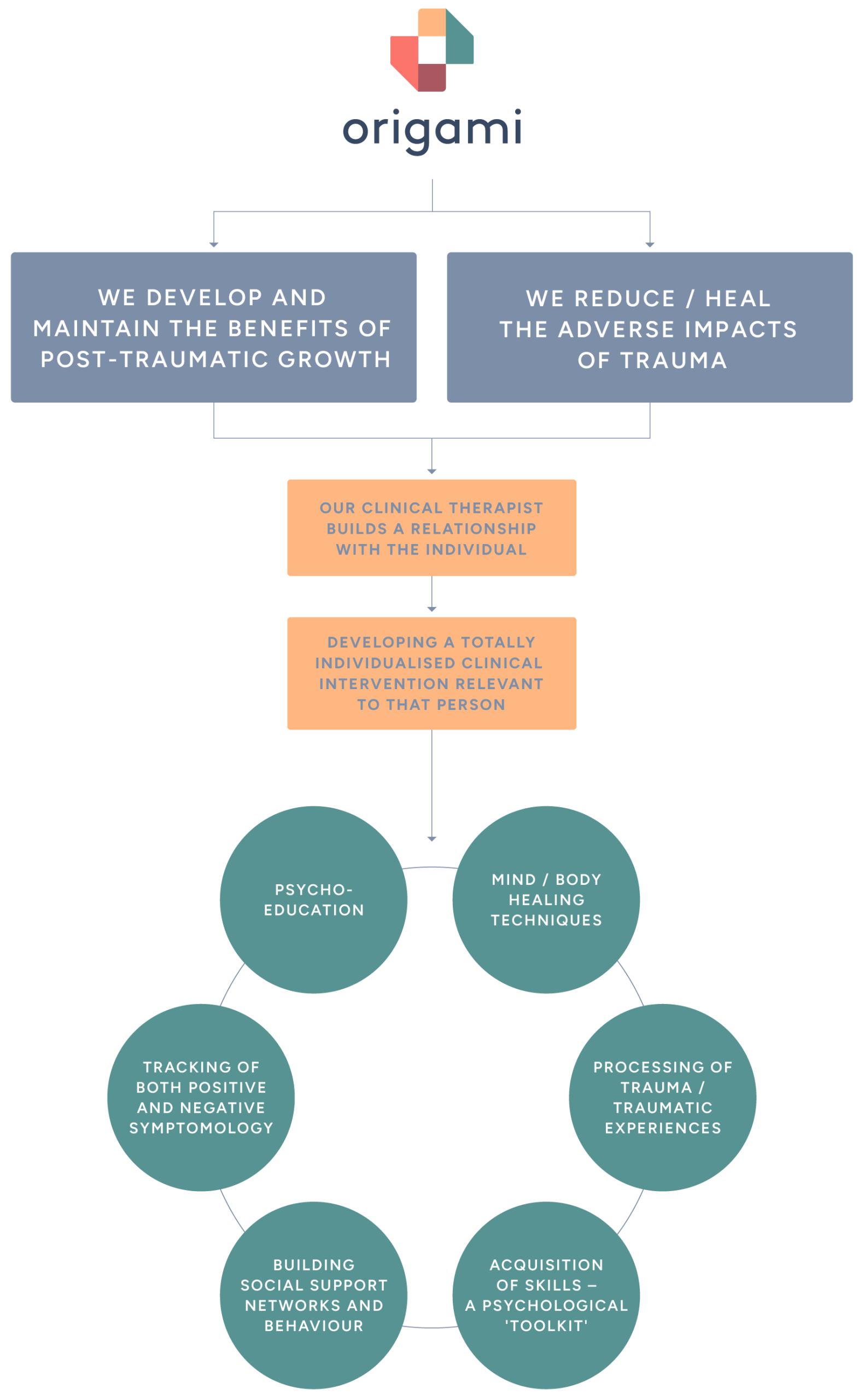The hippocampus (memory and contextualisation) and prefrontal cortex (executive control) often strengthen their connectivity, supporting more effective meaning-making, narrative integration of trauma, and emotional regulation. More balanced activity between the amygdala (fear response) and regulatory networks, leads to reduced hyperarousal.